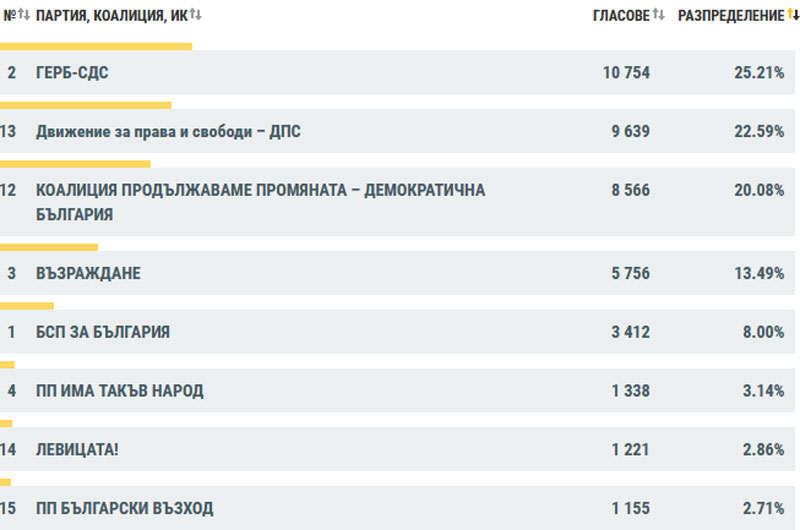 „Възраждане“ са на четвърто място в областта с 13.49% от вота на избирателите. След тях са „БСП за България“ – 8%.