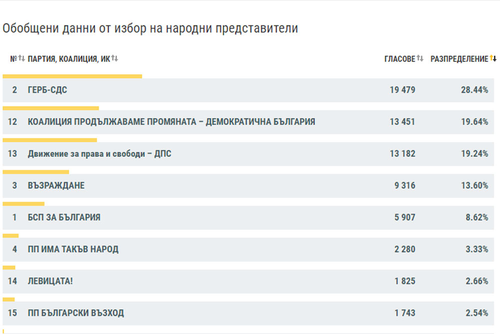 ГЕРБ-СДС остават първи с 28.44% от гласовете при обработени 85.74% от протоколите в Хасковска област.