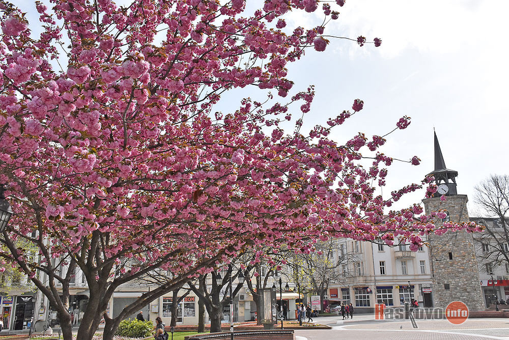 Пролетта превзе центъра на Хасково с красивите цветове на японските вишни.