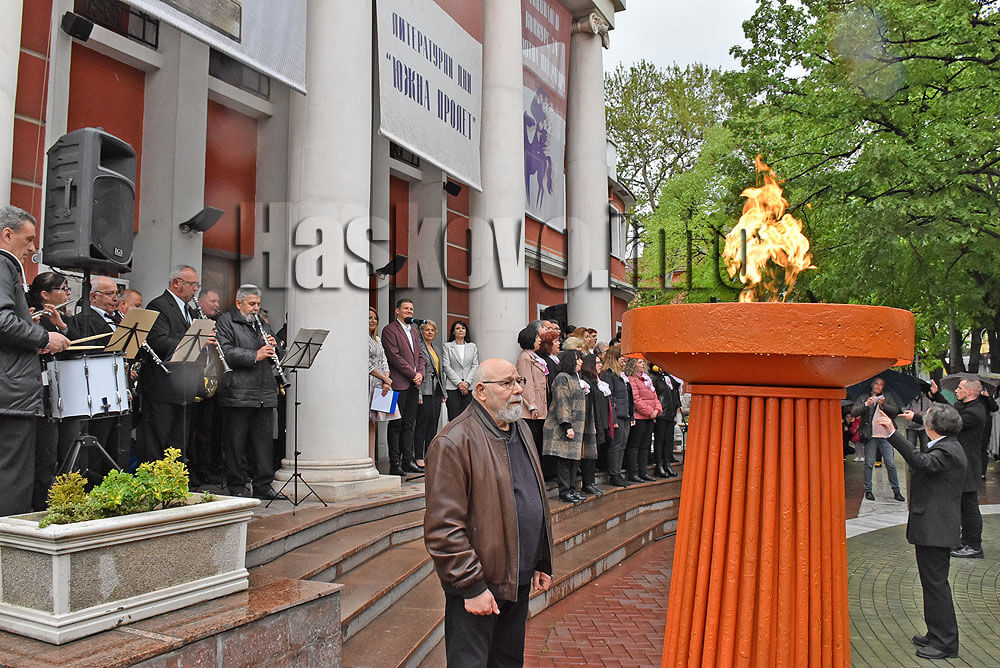 Акад. Владимир Зарев запали тази вечер огъня на 51-те литературни дни „Южна пролет“ пред театър „Иван Димов“ в Хасково.