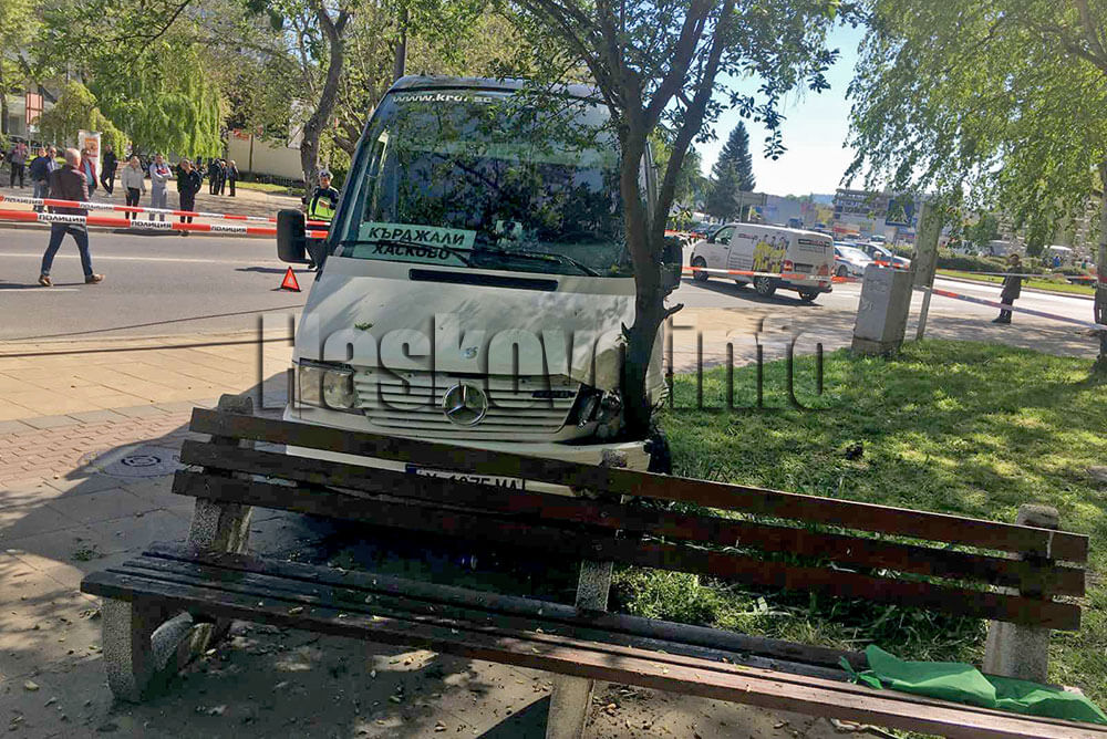 На шофьора му е прилошало, блъснал се в друг бус и в пейка на тротоара