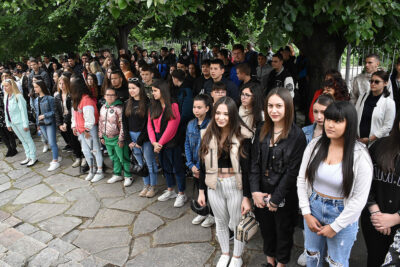 Абитуриенти бяха с тениски с кауза в подкрепа на Фондация „За нашето бъдеще“ – деца с увреждания на брахиалния плексус (т.нар. акушерска пареза). Зрелостниците събраха 1 500 лв.
