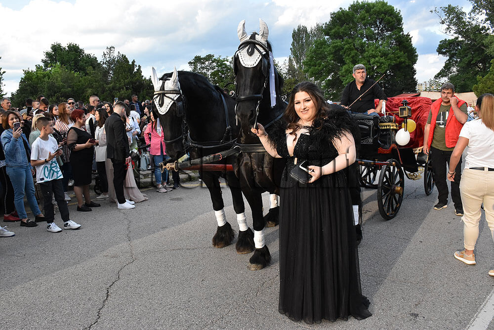 Анастасия Златева избра да дойде на празничната вечер с файтона на баща си Янко. Асен Хаджиев пък заложи за пристигането си на малко багерче.