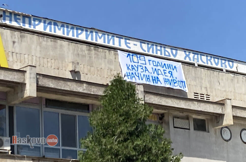 От фенклуба на „Непримиримите – Синьо Хасково“ опънаха послание за 109-годишнината на футболния клуб „Левски“ (София).