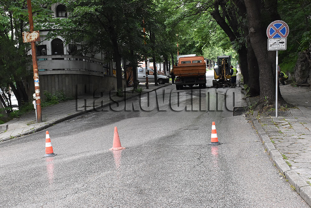 Хасковската улица „Булаир“ беше затворена за движение в късния следобед откъм Военния клуб за отстраняването на ВиК-авария.