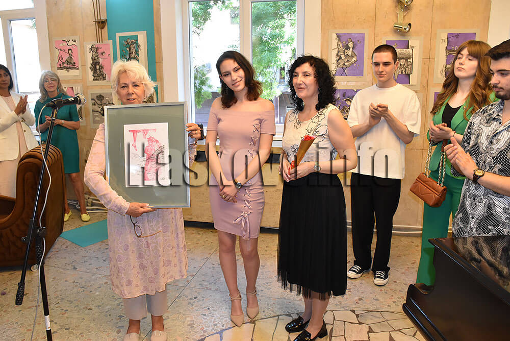 Рисунките са предимно графични, в тях има много малко цветове, но въпреки това децата заредиха ценителите на тяхното изкуство с много любов и лятно настроение. Талантите подариха много цветя на своя ръководител Веселина Делчева, която откри изложбата и представи четиримата абитуриенти, които имат централно място в експозицията. Това са Дарина Хаджипетрова, Иван Николов, Мариела Стойчева и Станислав Иванов.