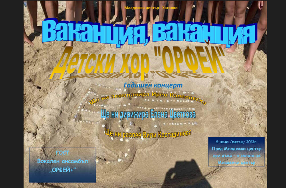 Годишен концерт „Ваканция, ваканция“ ще представи тази вечер пред хасковската си публика детски хор „Орфей“ при Младежкия център.