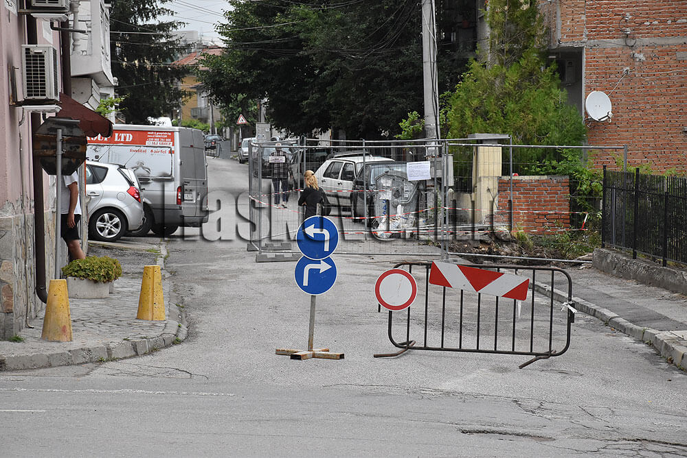 Причината е, че тази нощ е пропаднал тротоарът при изкопа на новострояща се къща. Отделно мястото се пълни с вода, като собствениците на имота предполагат, че има спукан водопровод. Майстори се опитват да укрепят мястото.