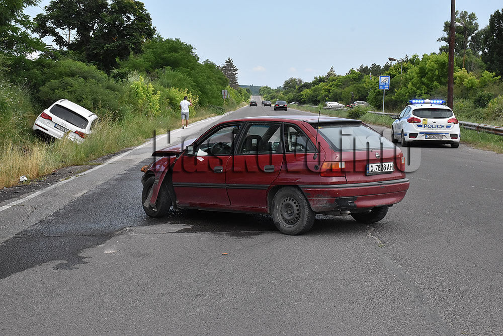 Произшествието стана до разклона за ханче Клокотница, откъдето е излизал лек автомобил Опел. Той се е ударил с движещия се по главния път в посока Хасково Ауди Q7. От сблъсъка Аудито е излетяло в канавката.