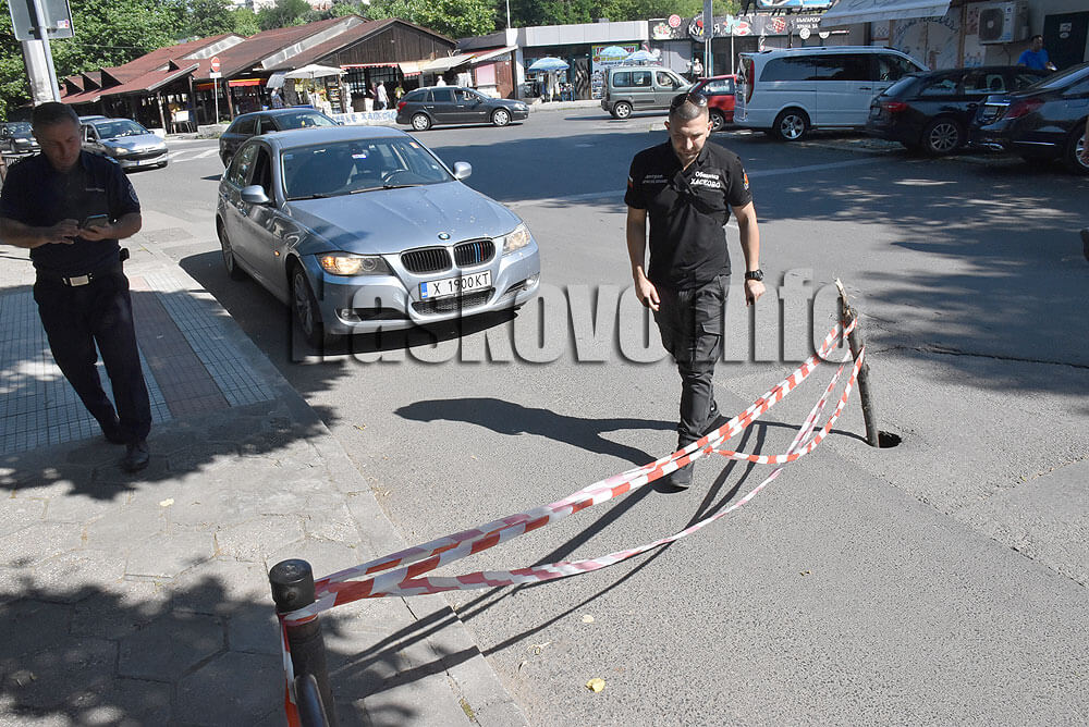 Част от булевард „България“ до зеленчуковия пазар в Хасково беше заграден с лента тази сутрин заради отворила се дълбока дупка в асфалта.