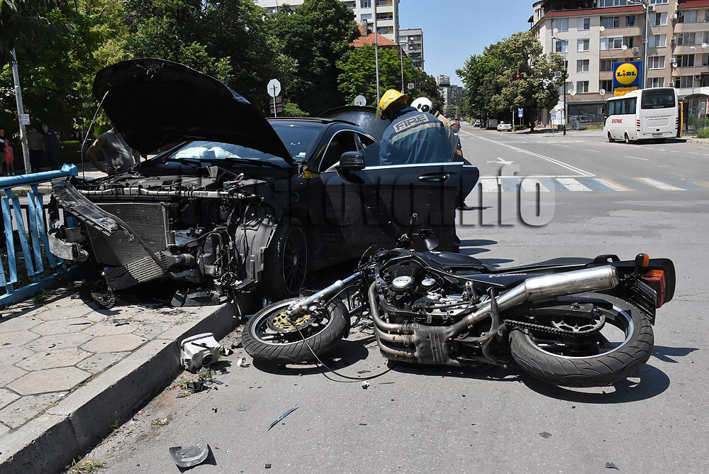 Не колата, а мотористът поради завишена скорост е блъснал колата, иначе няма как такъв тежък автомобил така жестоко да се забие и потроши в моста. Всеки ден фучат с моторите по булевардите като луди, напълно необезпокоявани от катаджиите.
