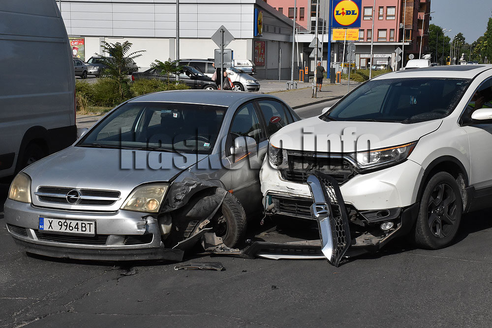 В късния следобед на кръстовището до площад „Лебеда“ се удариха Хонда с молдовска регистрация и хасковски Опел. Водачът на Хондата е излизал от моста и не е пропуснал движещата се по булевард „България“ кола.