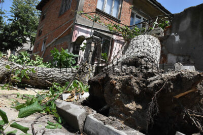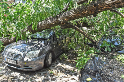 Отделно има смачкани автомобили и повредени къщи от паднали дървета. Вятърът е съборил и електрически стълбове.
