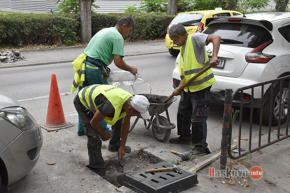 Работници на "Екопрогрес" ремонтират и подменят шахтите по хасковския булевард "България".
