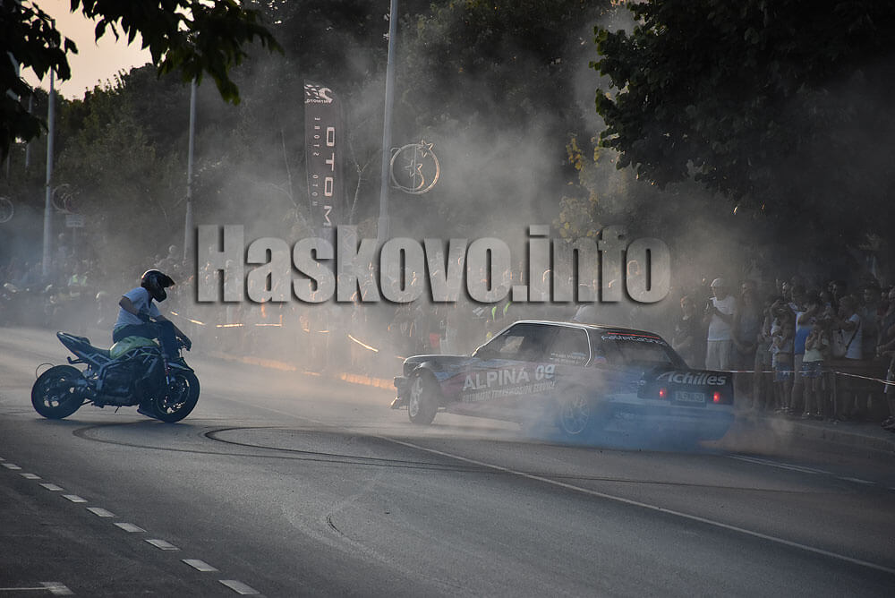 В 19:30 часа започнаха и акробатичните изпълнения на мотористите, като имаше и традиционното палене на гуми.