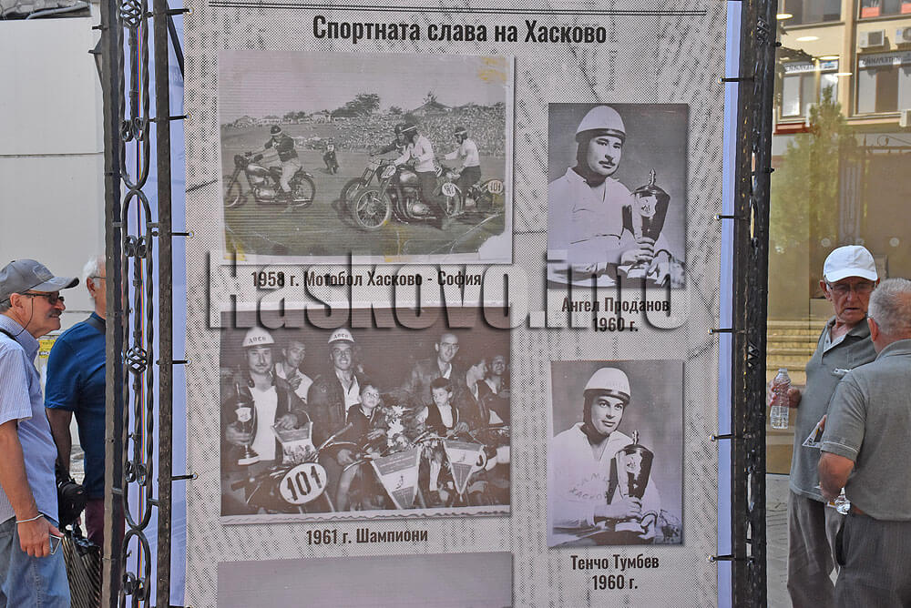 Фотоизложбата „Спортната слава на Хасково“ беше открита по обяд под старата часовникова кула в центъра на града.