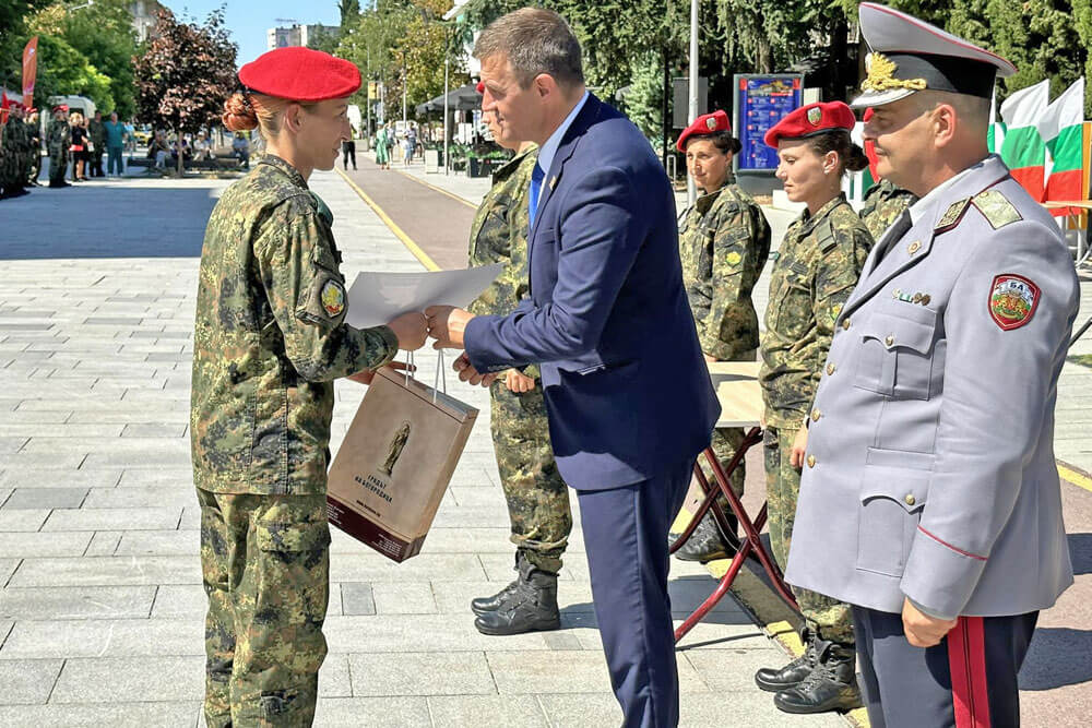На тържествена церемония в Стара Загора градоначалникът награди старши лейтенант Тодор Петев, старши сержант Петко Атанасов и редник 2-ри клас Руска Радева за постигнати високи резултати в бойната подготовка.