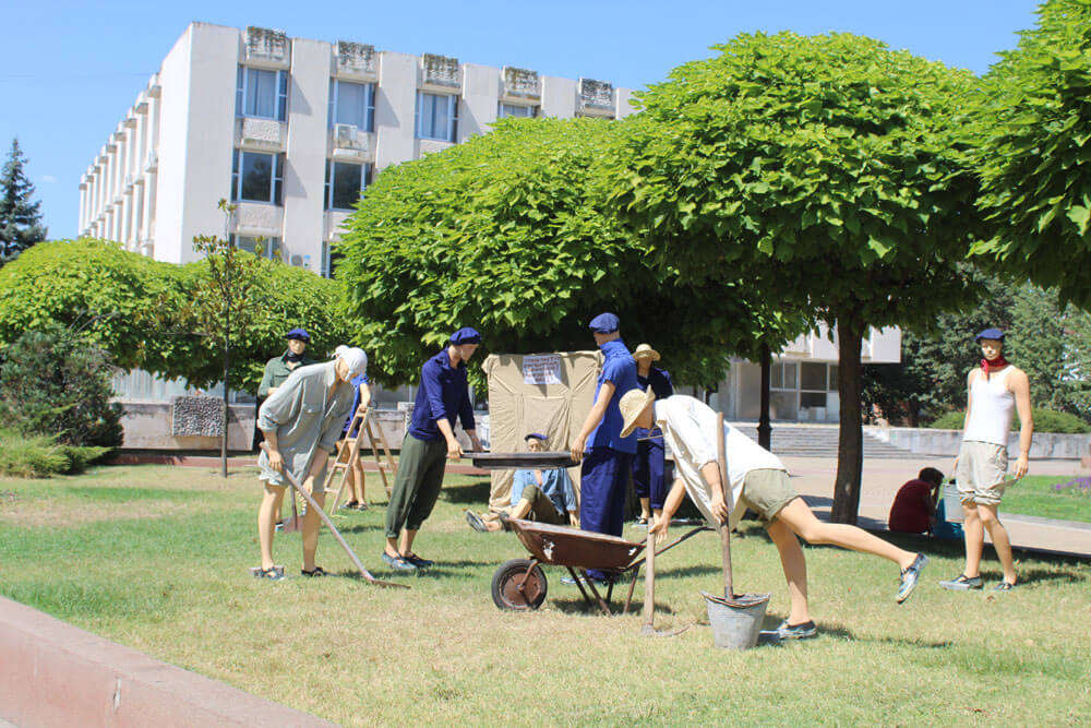 Художествена инсталация с елементи на пърформанс на тема „Бригадирското движение“, посветена на празника на Димитровград е разположена в зелените площи до шадравана на площад „България“.