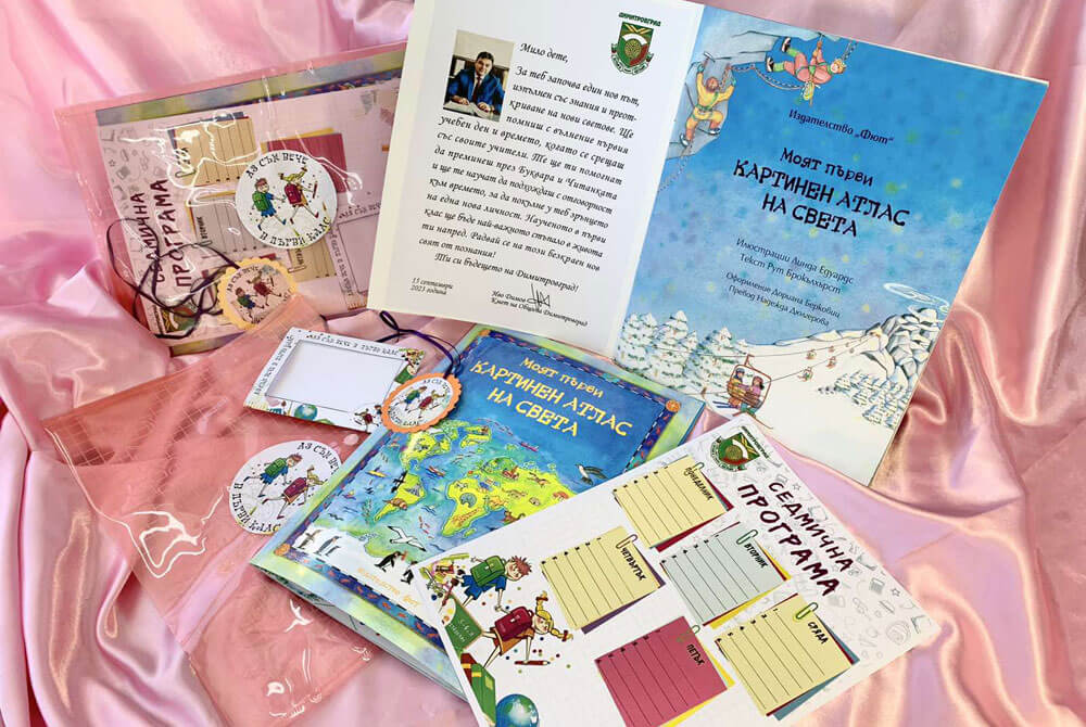 Всички първокласници получават подаръчни комплекти вече 11 г. от общината. На вътрешната страна на всеки атлас има специално обръщение от кмета Иво Димов към малките ученици. Тази година 377 деца ще прекрачат за първи път училищния праг.