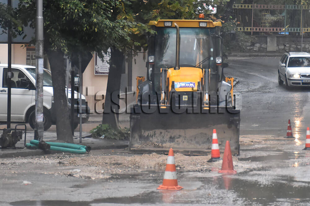 Междувременно преди обяд продължаваше отстраняването на аварията до училище „Васил Левски“ в Хасково, която снощи наводни съседното кръстовище. Тази сутрин теч изби и по улица „Дунав“.