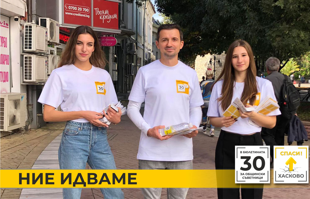 Кандидати за общински съветници от листата НИЕ ИДВАМЕ се срещнаха в съботния ден със стотици граждани. Срещите на активистите от „Спаси Хасково“ арх. Валентин Маринов, Мартин Узунов, Мартин Деспов, Дрогомир Колев и Мирослав Минев започнаха от центъра на града и продължиха на  Зеленчуковия пазар.