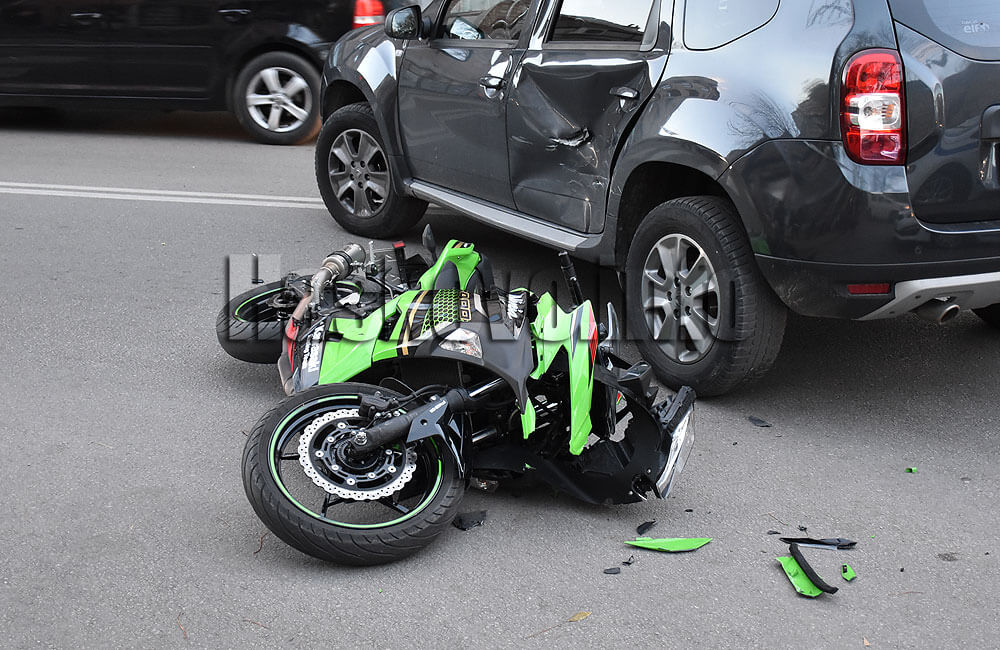 Сблъсък между мотоциклет и кола в час пик в центъра на Хасково