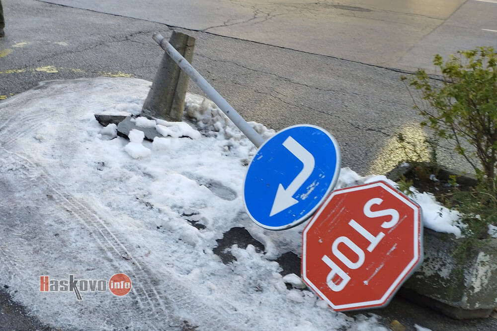 За пореден път някой е съборил знаци до хасковското читалище „Заря“, сигнализираха читатели на Haskovo.info.