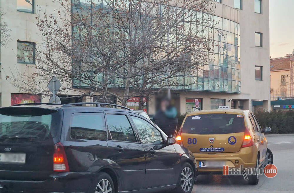 Два леки автомобила се удариха в час пик пред Първа поликлиника в Хасково. Снимка: Дениз Карекинян