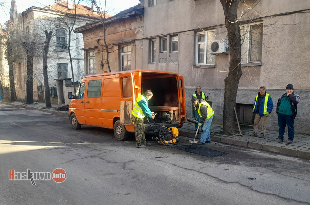 Дупките по хасковската улица "Преслав" бяха закърпени със студена асфалтова смес.