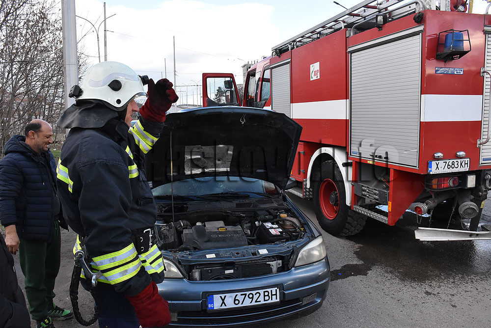 Инцидентът стана в ранния следобед в района на складовете. Шофьорът разказа, че е пътувал от Узунджово до магазин в Хасково и в движение е забелязал да излиза пушек от предницата на колата.