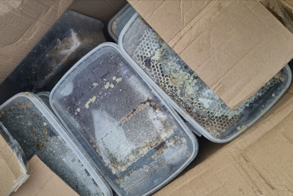 Бусът е селектирано за щателна митническа проверка, при която зад декларираната стока са открити 28 кашона с хранителни стоки. Намерени са недекларирани 191 кг. мед, 104 кг. пчелни пити и 96 петмез, както и 209 кг. други хранителни стоки, които по думите на шофьора са предназначени за близки и роднини в Германия.