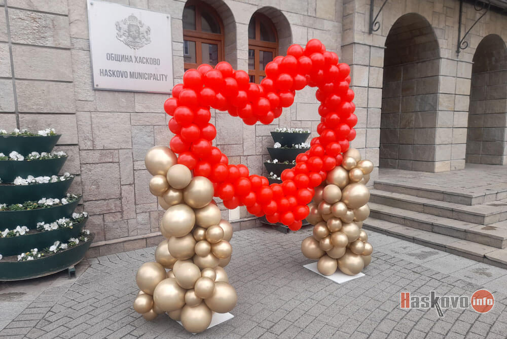Празнична рамка за снимки е поставена пред сградата на общината в Хасково за Деня на влюбените.