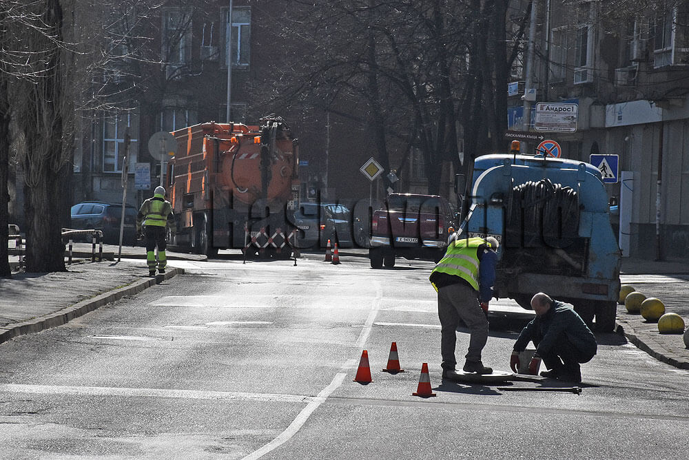Почистване на канализацията до централната поща в Хасково започнаха преди обяд от ВиК.