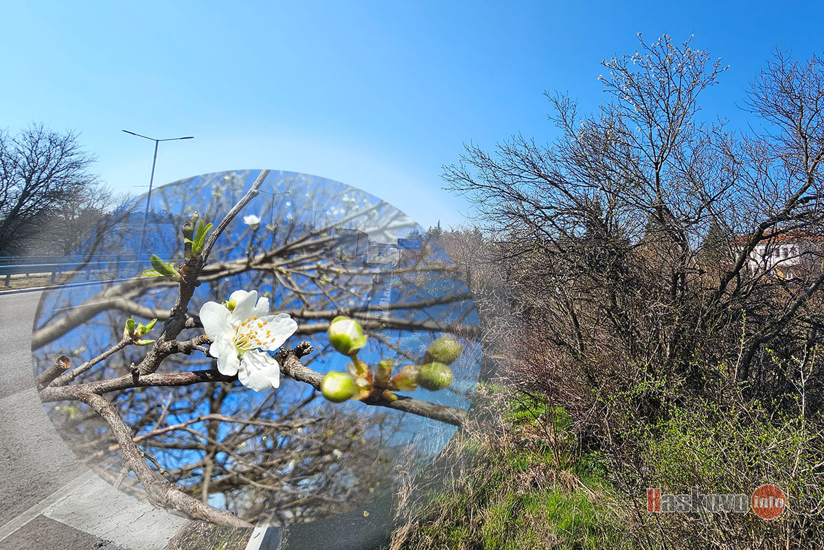 Първите дръвчета вече цъфтят край Хасково с покачването на температурите.