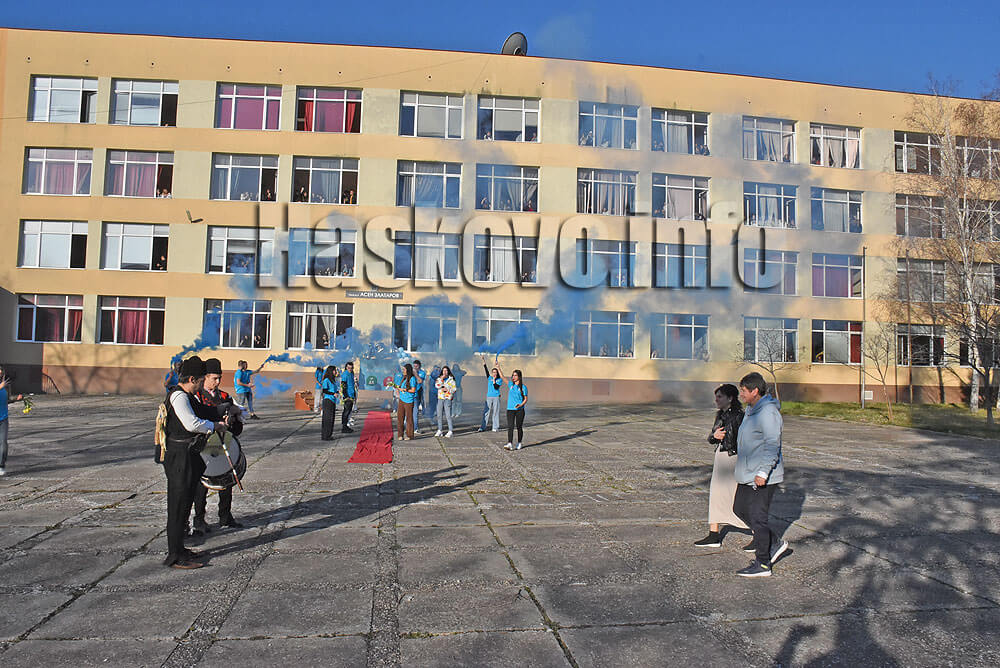 Изненадата беше наблюдавана и аплодирана от много ученици в двора на гимназията и завърши с хоро.