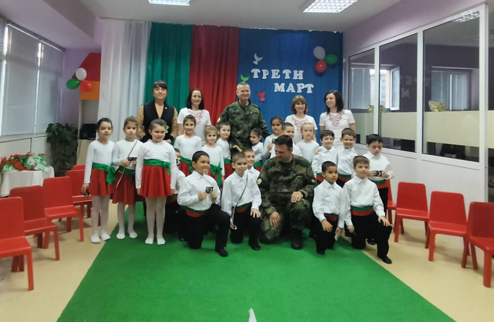 В приповдигната патриотична атмосфера, пред своите родители и специални гости – майор Веселин Иванов и старшина Добри Радев от хасковското военно формирование 52 740 децата имаха урок по родолюбие „3 март свещена дата в сърцето на всеки истински българин!“, похвалиха се от градината.