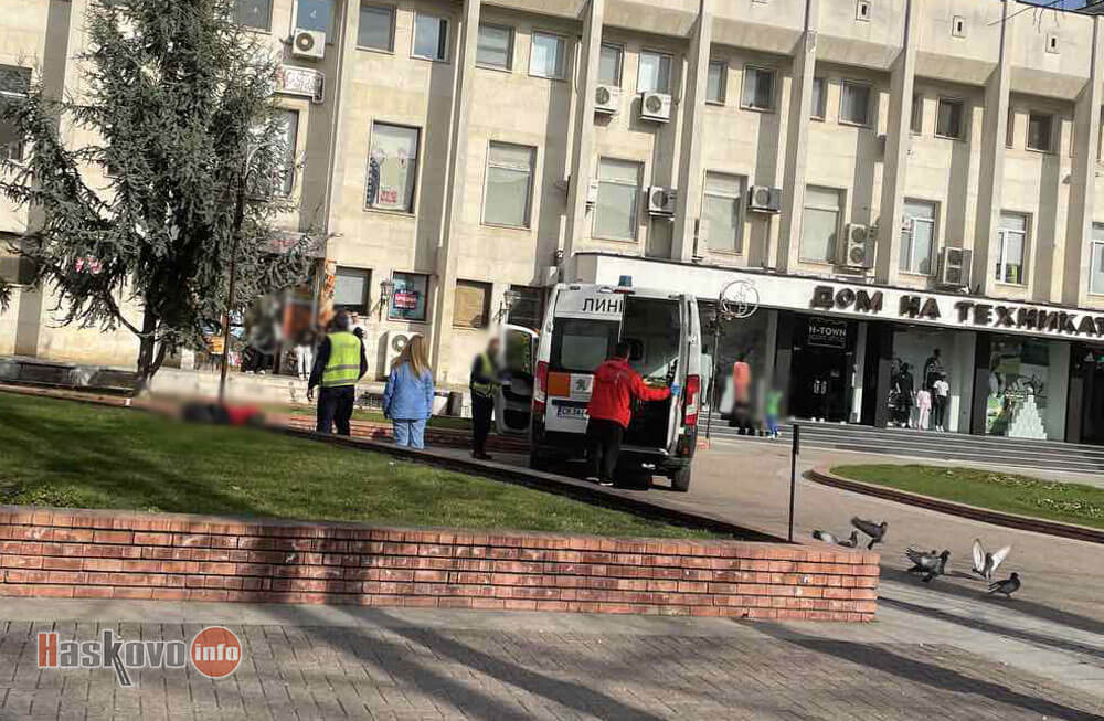 Спешни екипи влязоха в центъра на Хасково заради мъж в безпомощно състояние, сигнализираха читатели на Haskovo.info.