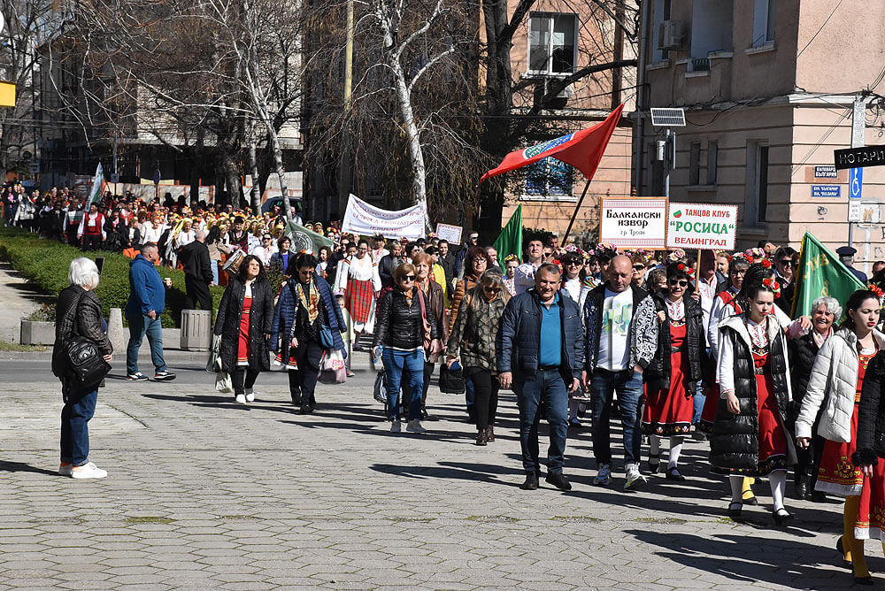 По традиция всички се събраха на площад „Свобода“, откъдето тръгна дефиле към спортна зала „Дружба“ за откриването на фолклорното събитие, което не е с конкурсен характер. Множеството затвори за известно време булевард „България“ до спортната зала, което изнерви някои от шофьорите в задръстванията.