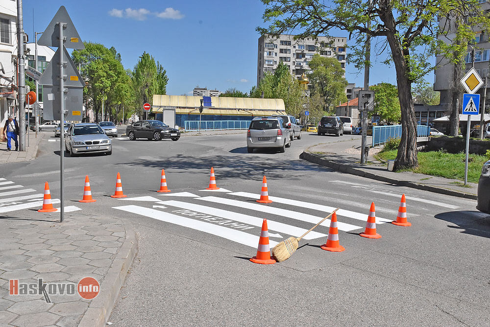 Освежават пешеходните пътеки по булевард „България“ в Хасково.