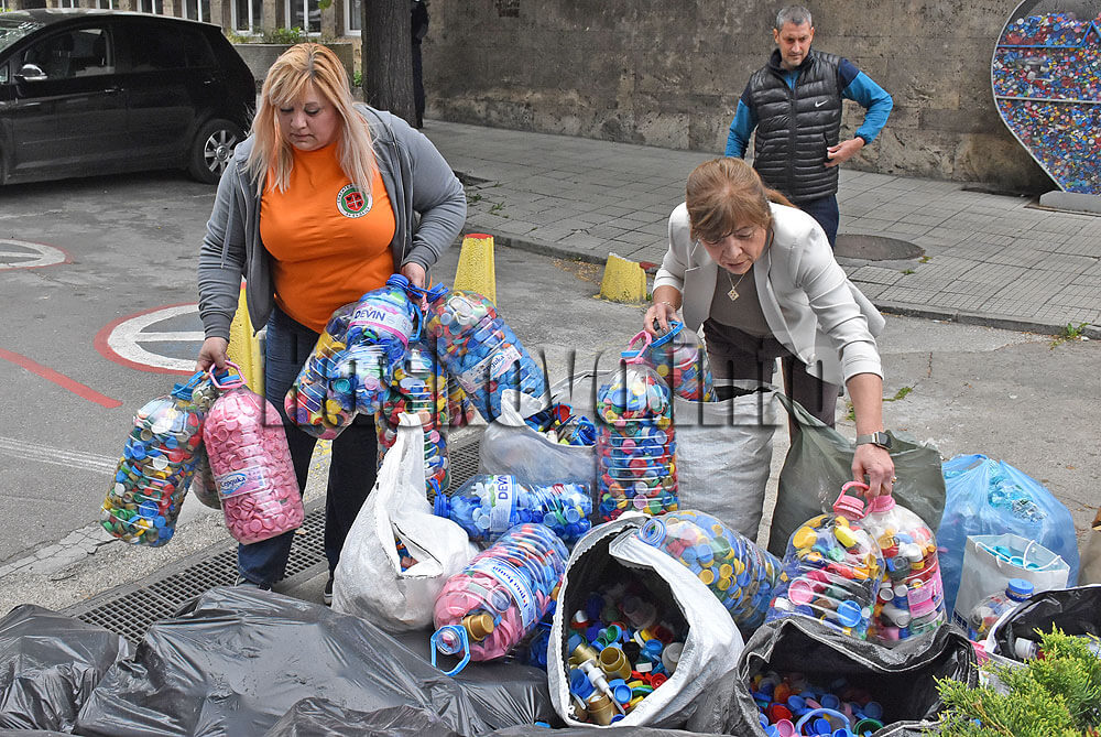 Доброволци предават, събират и транспортират за рециклиране хиляди пластмасови капачки и алуминиеви кенчета. Пролетната акция се провежда от 10 до 14 часа на площад „Свобода“.