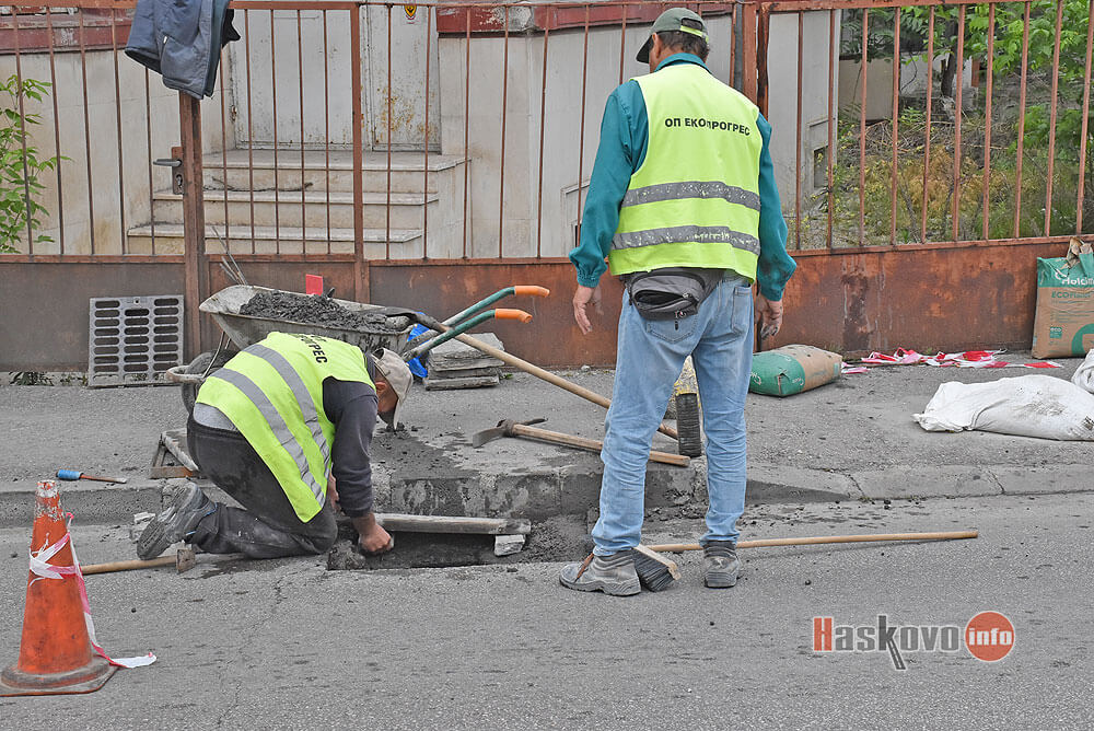 Ремонтират една от запушените шахти на булевард "България" до театъра в Хасково.