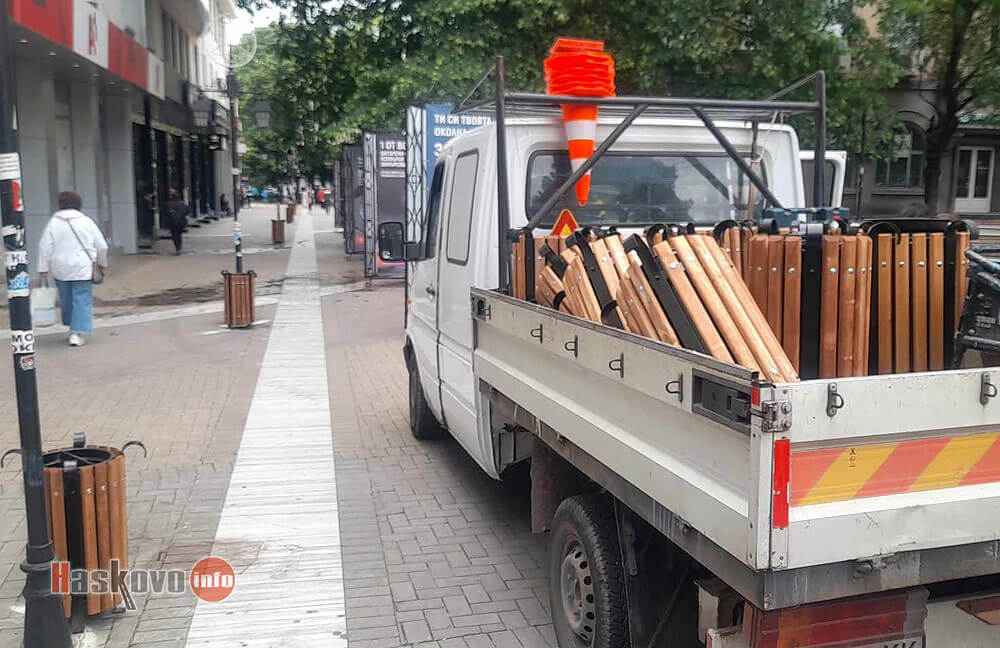 Нови кошове за отпадъци се поставят в центъра на Хасково.
