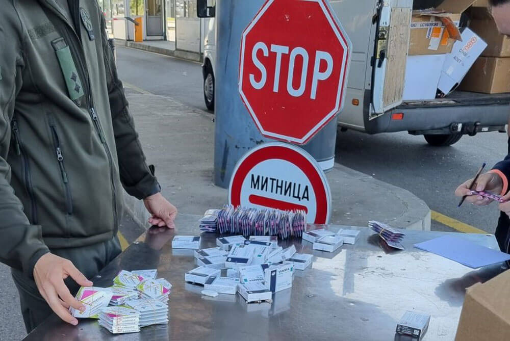 Колата е селектирана за щателна митническа проверка. В най-отдалечената от вратата вътрешна част на товарното помещение са били укрити по метода „тапа“ 12 кашона, пълни с различни препарати за полова мощ. Общото количество на задържаните сексуални стимуланти е 1 620 таблетки и 4 279 сашета.