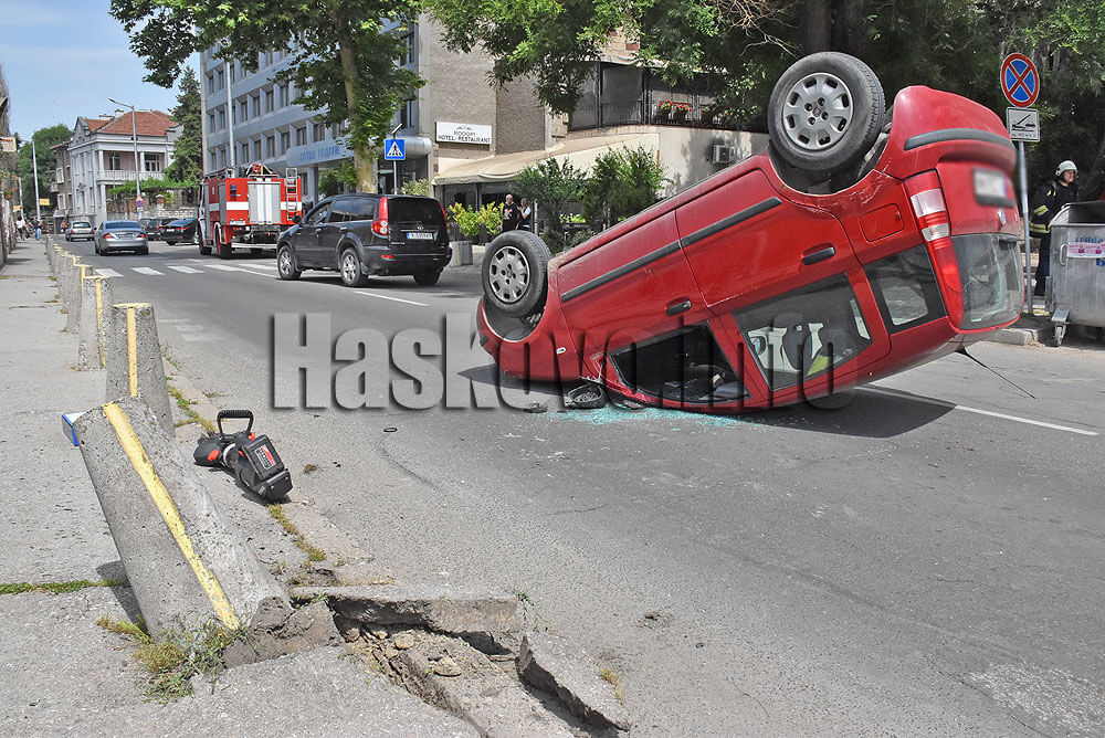 Кола се преобърна до Младежкия център в Хасково