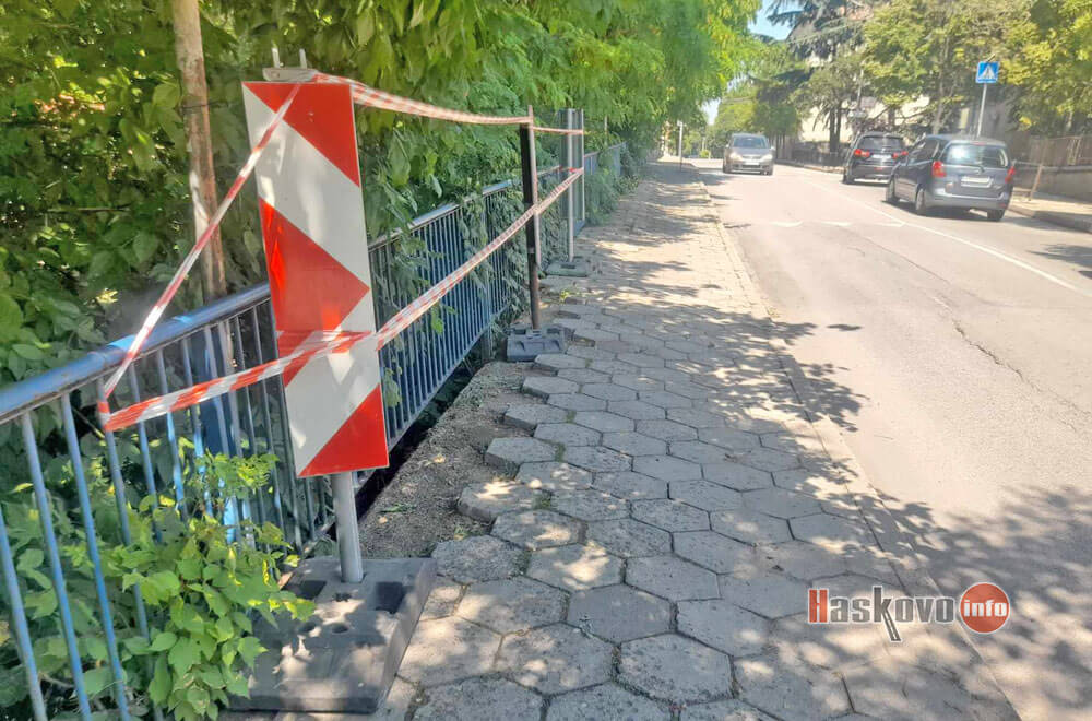 Опасен парапет на улица „Стара планина“ до Младежкия център в Хасково е ограден с ленти. Той ще бъде укрепен в понеделник, съобщиха за Haskovo.info от общината.
