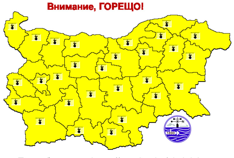 Времето ще е горещо с максимални температури в равнинната част до 35 – 38 градуса.