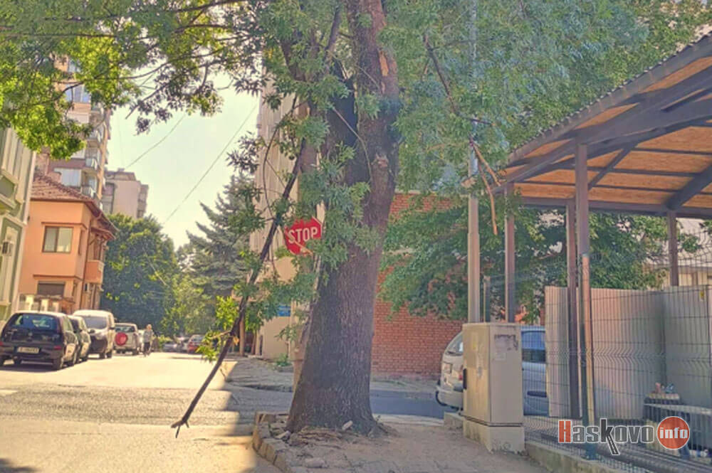 За опасно надвиснали клони на кръстовището на улиците „Средна гора“ и „Георги Кирков“ в Хасково сигнализираха читатели на Haskovo.info.