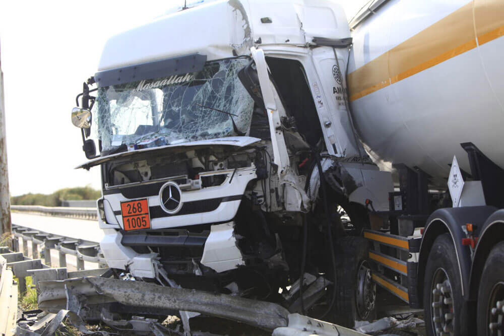 Празната турска цистерна за амоняк се е ударила в мантинели. При произшествието няма пострадали, като към 10:20 часа е започнало пропускане на автомобилите, допълниха за Haskovo.info от Пътна полиция.