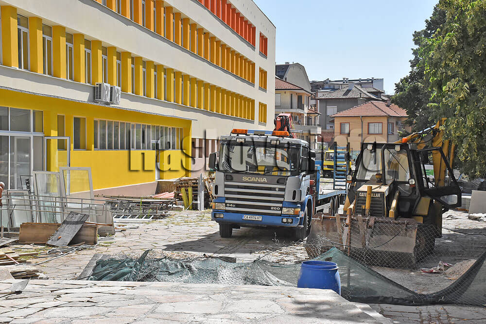 Продължава обаче ремонтът в основното училище „Никола Вапцаров“, който започна през април и ще продължи 311 дни. Учениците бяха преместени в ПГТАТ „Н. Й. Вапцаров“, а децата от подготвителната група в сградата на детска градина №19.