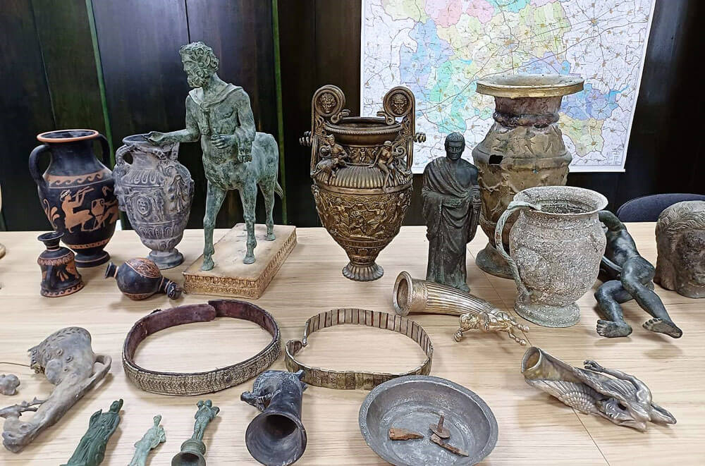 При извършените претърсвания са иззети над 450 предмета с белези на културни ценности, включително оръжие и техника.